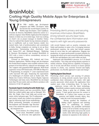 BrainMobi is a mobile app development company based in Noida, India that was founded in 2015 by Amit Upadhyay. It provides mobile app development services for iOS, Android, and cross-platform apps using Agile Scrum methodology. BrainMobi has developed over 50 apps for clients and focuses on crafting high-quality, user-centric apps with distinctive UI/UX. It emphasizes on-time delivery, reduced costs, 24/7 support, and ensuring ROI for clients.