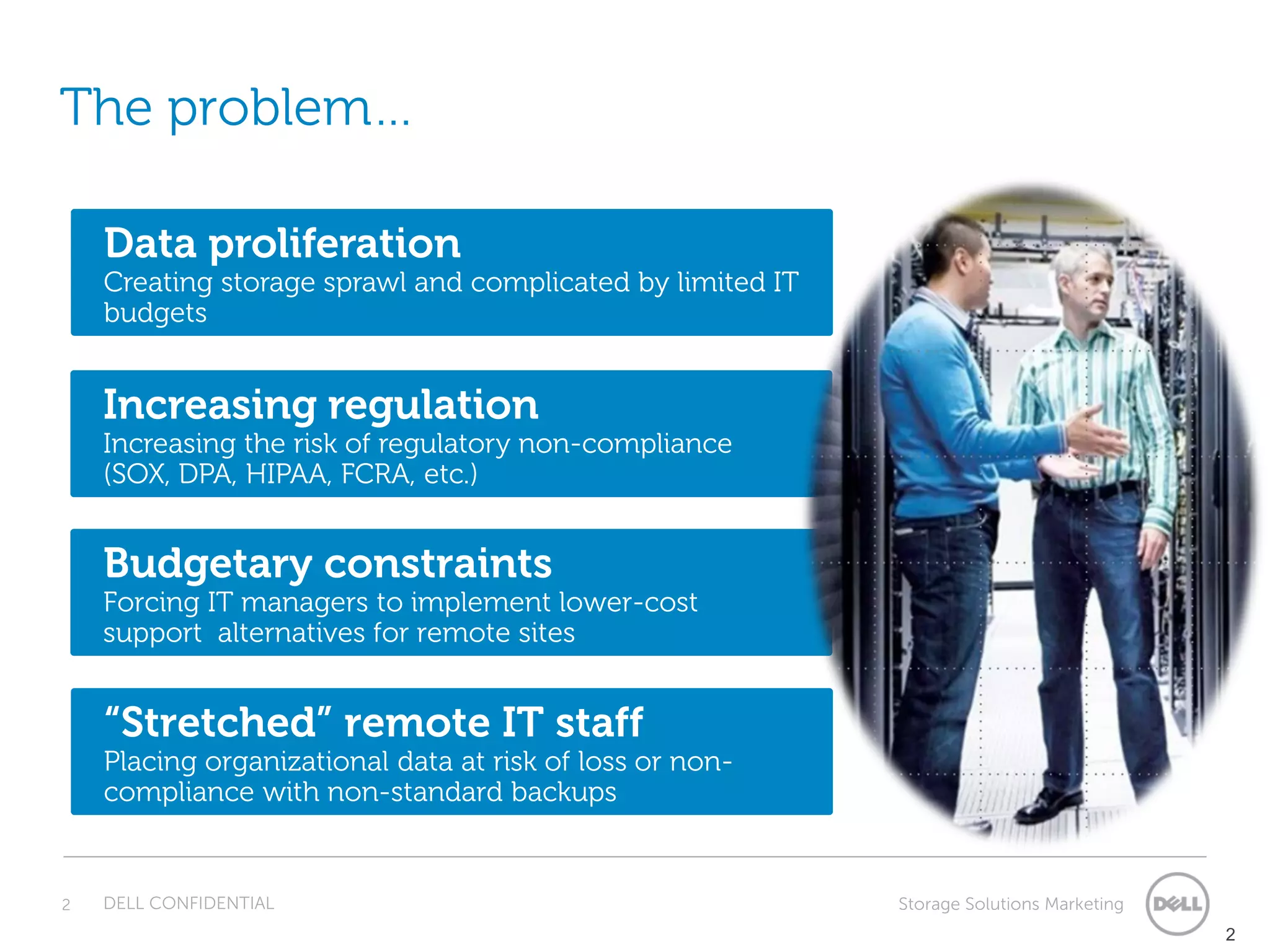 This document discusses strategies for consolidating data from branch offices in a cost-effective way. The challenges include data proliferation across sites, increasing regulation, and budget constraints. Consolidating data in the cloud can help address these issues through improved utilization, centralized management, simplified backups, and virtualization benefits. Key components of remote consolidation are using Ethernet protocols to deliver storage to remote sites, central management software, and WAN optimization techniques like deduplication and acceleration. Tests showed these methods increased the amount of change rate data that could be supported over WAN links by up to 5 times. The document recommends leveraging Ethernet, centralized software management, and optimizing existing WANs.