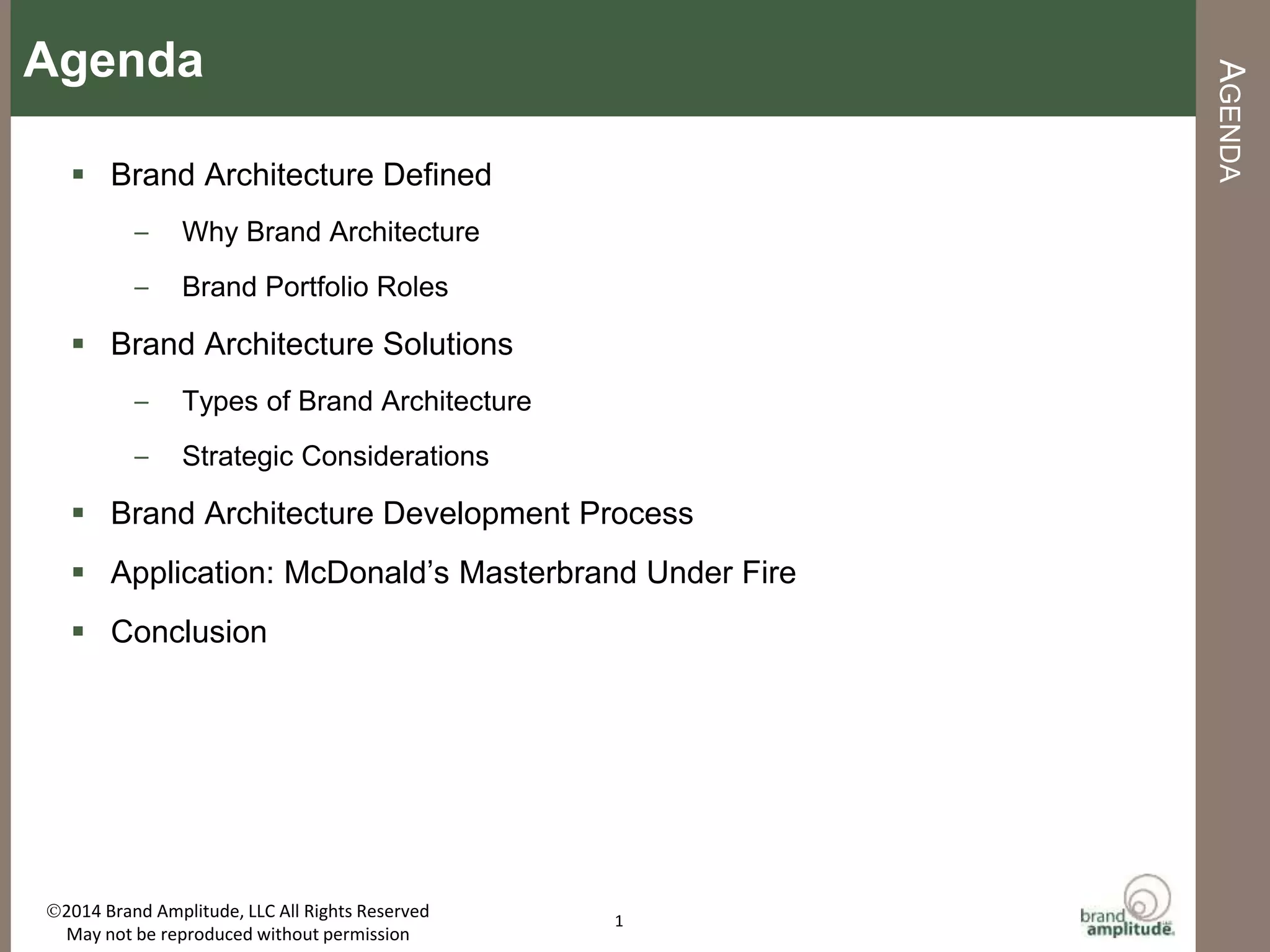 The document outlines the concept of brand architecture, emphasizing its significance in structuring a company's brand portfolio for aligning with business strategies and enhancing clarity, efficiency, focus, growth, and equity. It discusses various brand roles, architecture solutions, and frameworks for decision-making, highlighting real-world examples such as Disney and McDonald's to illustrate the application and impact of effective brand architecture. Organizations are encouraged to revisit their brand architecture when strategic changes occur or brands lose relevance.