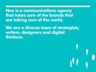 The document provides tips for building a brand on a limited budget. It suggests stripping a brand back to its core idea and defining its personality through 3-4 traits. Examples are given of Neo's brand positioning as amplifying needed messages and having a fresh, no-fuss, and real personality. Practical tips include getting strategic and branding work done together, using internal skills, negotiating with agencies, accessing student talent, and protecting the brand investment with guidelines. The workshop aims to help organizations communicate goals within a limited budget through refining brands and developing brand manuals.
