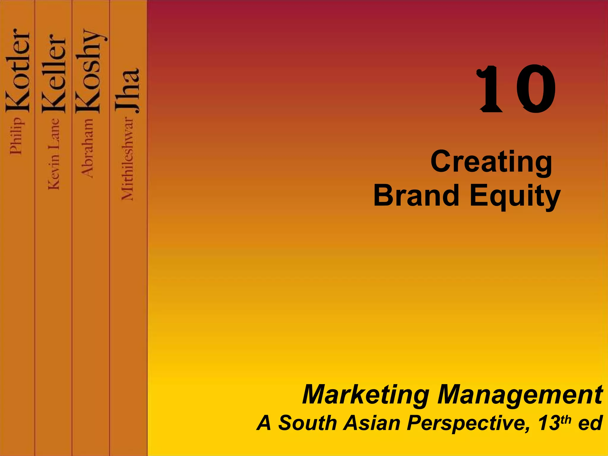 The document discusses various aspects of brand management including defining brands and brand equity, developing brand positioning, and measuring brand performance. It covers common brand equity models like Aaker's model and BrandZ, and how they measure elements such as brand strength, relevance, and consumer perceptions. It also outlines strategies for managing brand equity like brand reinforcement, extensions, and handling brand crises.