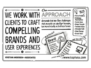 The document outlines the author's background in brand experience design, emphasizing that product and brand are interconnected with user experience (UX). It discusses how UX is not just a discipline but a philosophy that integrates various design roles to enhance customer perceptions across all touch points. Additionally, it highlights the business implications of UX, noting its importance in defining and designing value propositions that meet customer needs.