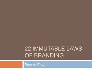 The document discusses several "laws of branding" according to Rhys & Rhys: