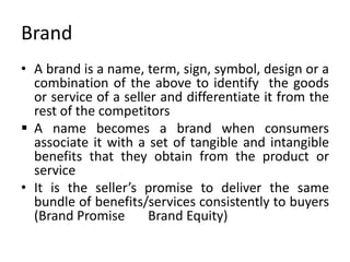 2) Why brands matter for both consumers and marketers by simplifying decisions, building loyalty and establishing barriers.