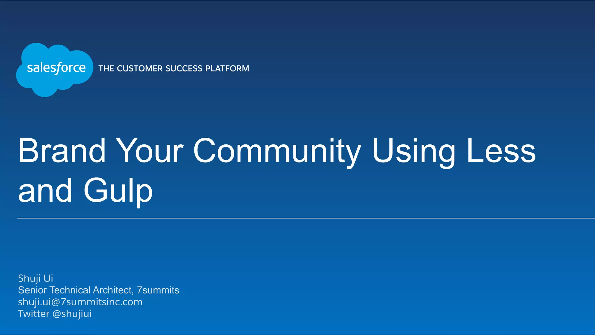 This document discusses branding community sites using Salesforce's community cloud, focusing on tools like LESS and Gulp to customize the visual design. It details how to create and configure Visualforce templates to integrate branding attributes and manage multiple communities from a single code base. Additionally, it covers practical implementation steps for loading headers/footers and generating CSS dynamically using Gulp and LESS.