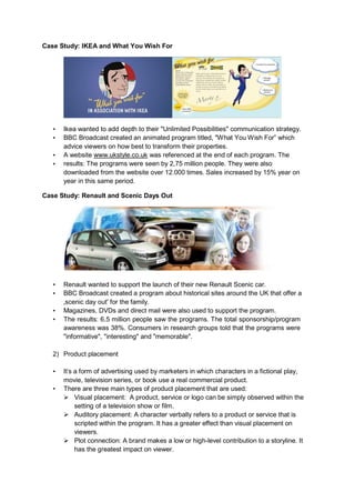 Branded entertainment involves integrating brands into entertainment properties like films, TV shows, and games. It has two main forms: advertiser-funded programming and product placement. The document outlines the history of branded entertainment and product placement. It also discusses how to measure effectiveness and provides best practices like ensuring a strong fit between the brand and content. Branded entertainment units are expected to play a larger role by creating custom content for brands across different platforms and screens.
