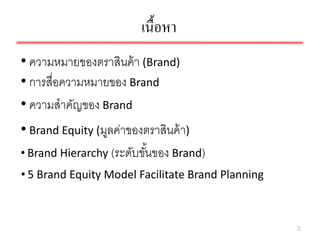 (Brand name) ซึ่ งเกิ ดจากการจัดการตราสิ นค้าที ่ดี ทาให้ในบางครั้งบริ ษัทสามารถที ่จะ