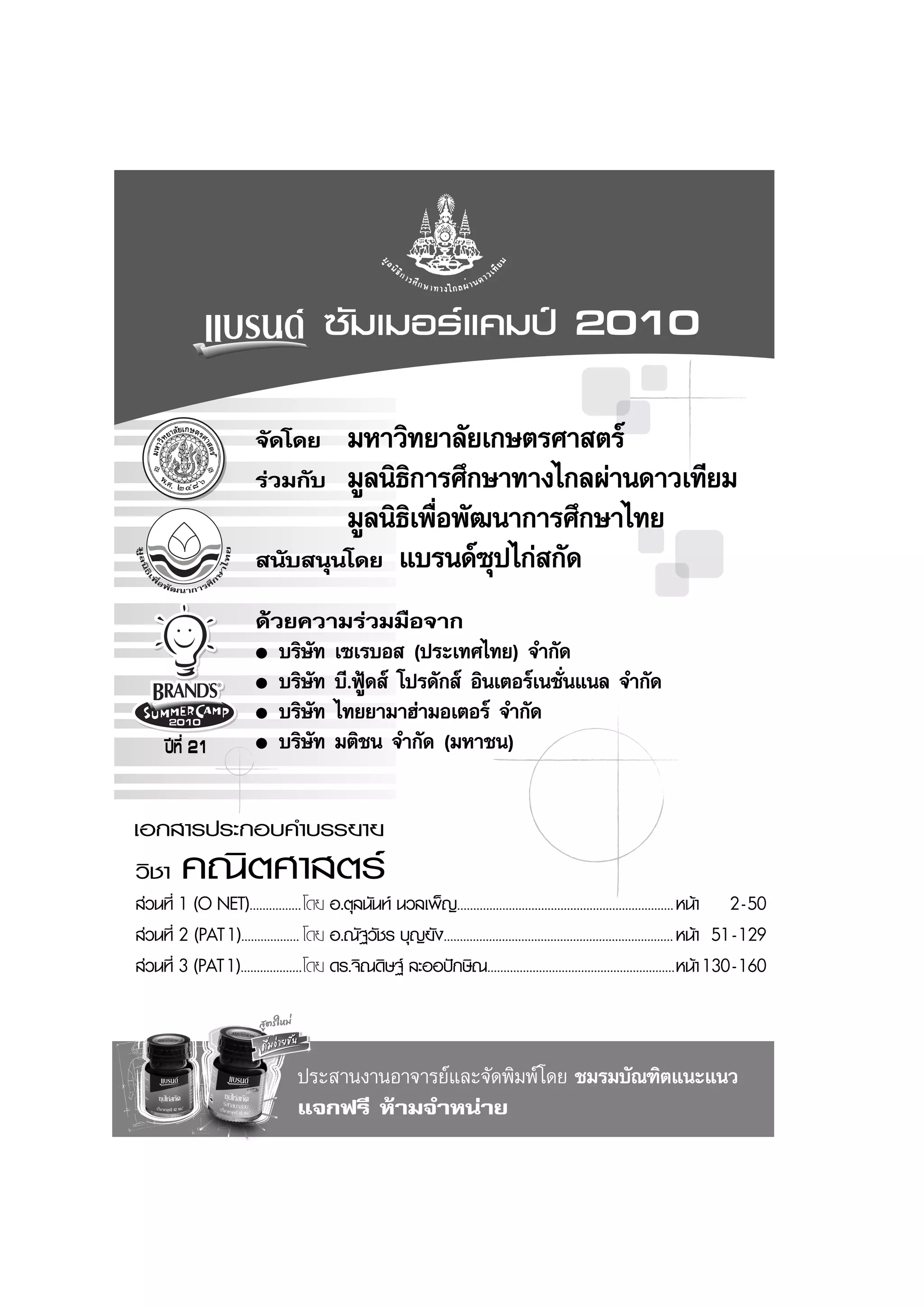 โครงการแบรนดซัมเมอรแคมป 2010 _____________________________ คณิตศาสตร (155)