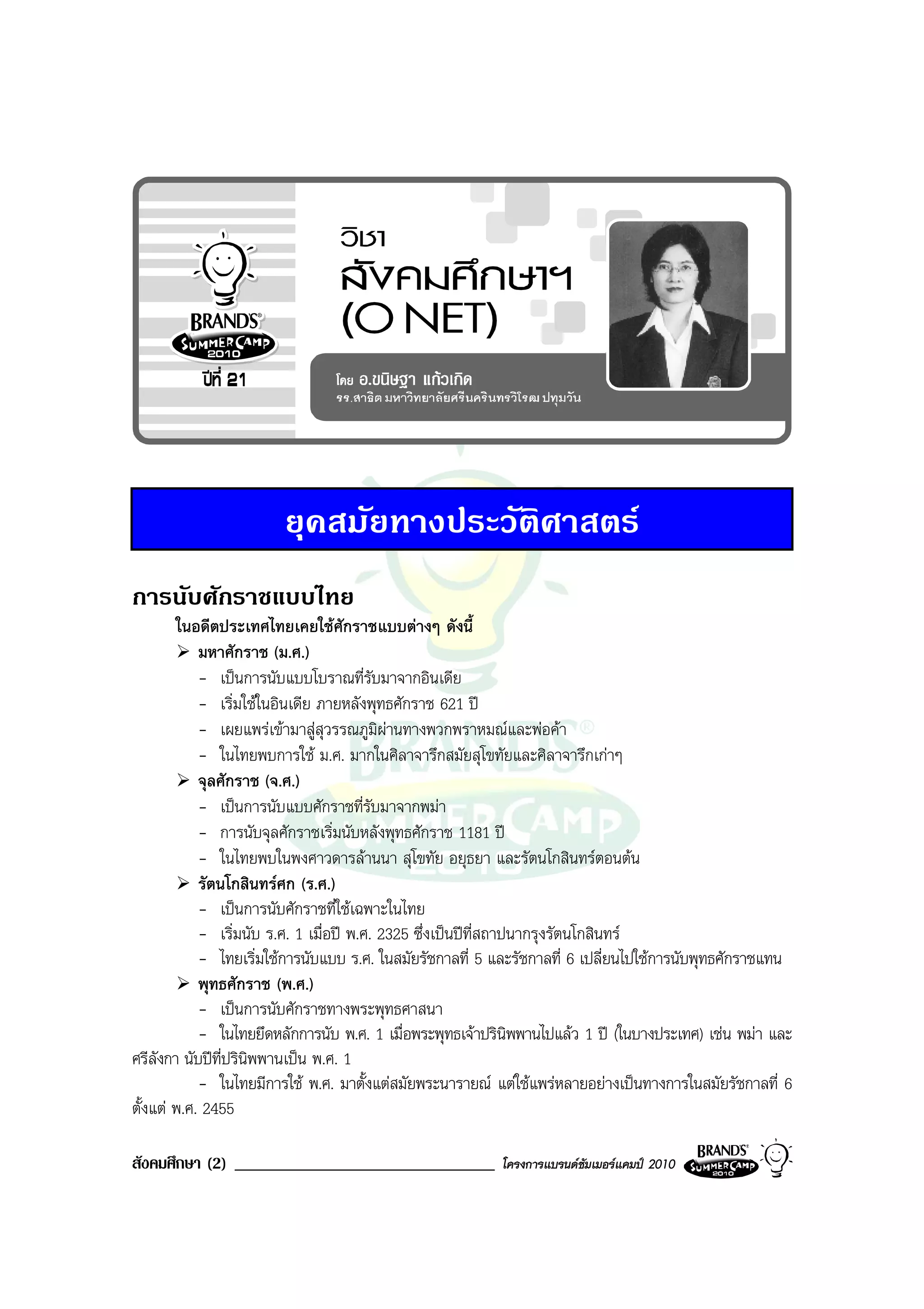 แบรนด์ซัมเมอร์แคมป์ 2010 สังคมศึกษา Onet 2010