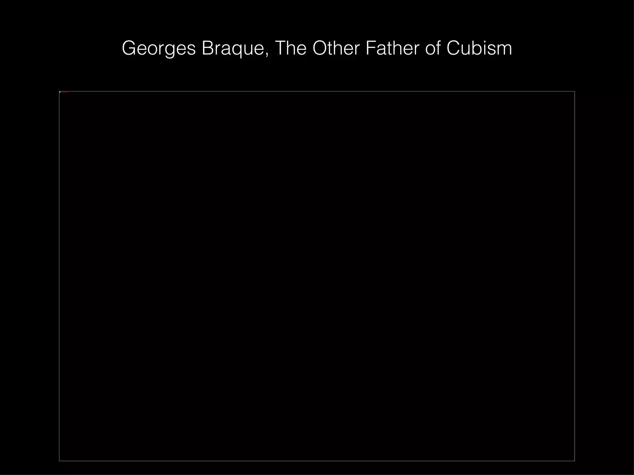 Georges Braque and Pablo Picasso were the two pioneering artists of the Cubist movement in the early 20th century. Some of their most famous collaborative works from 1906-1914 included musical instruments, still lifes, and abstracted compositions that featured geometric shapes representing multiple perspectives of subjects. Later in their careers, each artist continued experimenting with Cubist techniques individually.