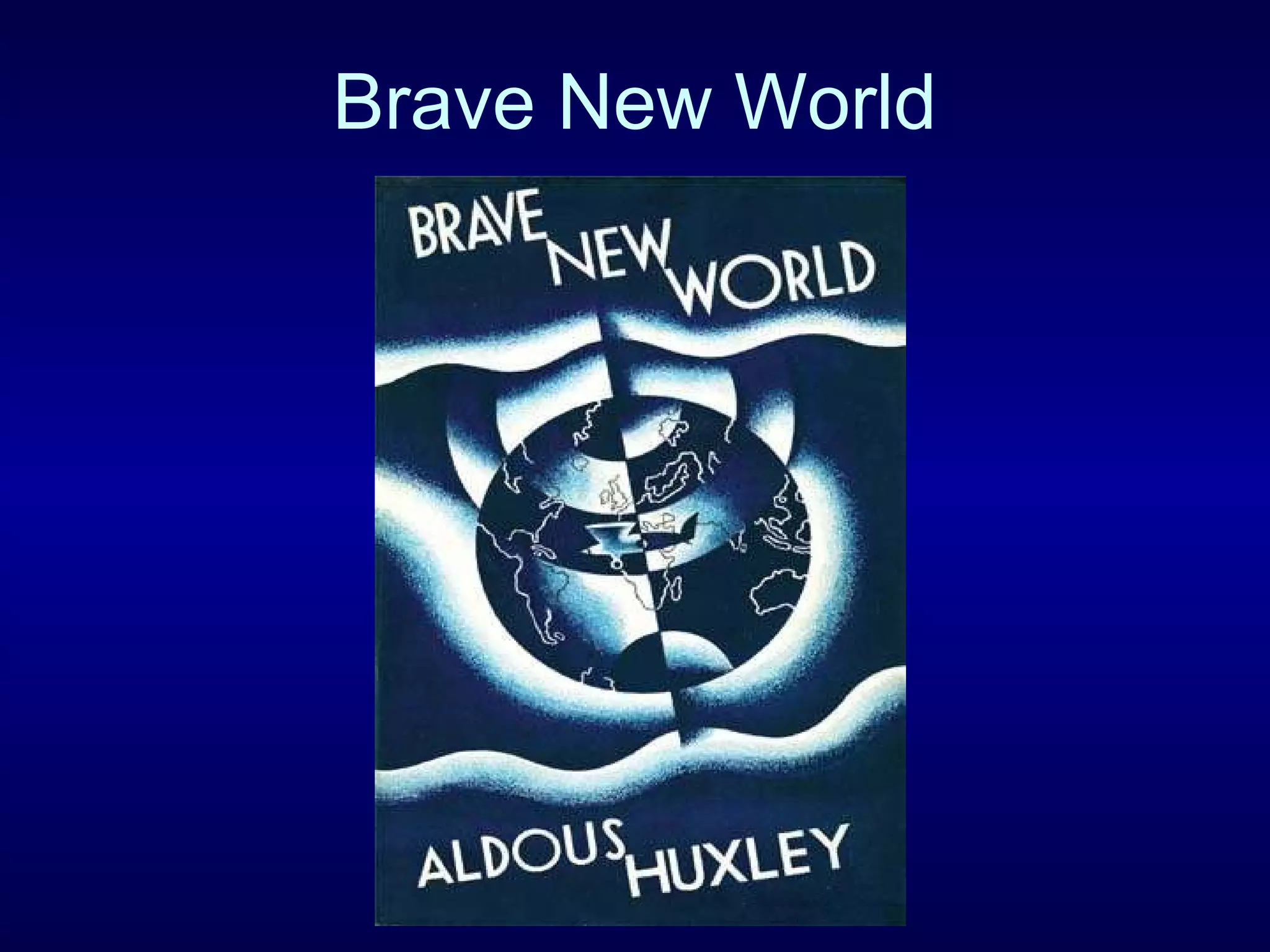 Brave New World by Aldous Huxley explores a dystopian future where society is strictly controlled. Set in London in 2540, people are genetically engineered and conditioned from birth to fit predetermined roles. Reproduction and family are abolished, and consumption of the happiness drug soma is encouraged. The plot follows two characters who feel unrest in this rigid system and encounter a "savage" man from outside their society. The novel examines themes of totalitarian control, amorality, and the impact of technology on social structures.