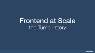 The document provides an overview of Tumblr, a platform founded in 2007, which hosts around 200 million blogs and over 83 billion posts. It details the technical stack used by Tumblr, including both frontend and backend technologies, and elaborates on their processes for deploying features, error logging, and the implementation of feature flagging for controlled A/B testing. Chris Miller, the product engineering manager, discusses the importance of quick iteration, thorough monitoring, and how they handle error logging to maintain service reliability.
