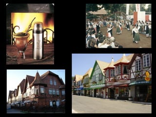 This document provides an overview of Brazil, including its geography, government, economy, and culture. Brazil is the largest country in both South America and Latin America, with a population of over 190 million people. The country has a diverse landscape and climate, ranging from the Amazon rainforest in the north to the colder, more European-influenced regions in the south. Key facts about Brazil highlighted in the summary include that it is one of the world's largest producers of coffee, orange juice, ethanol, and sugar.