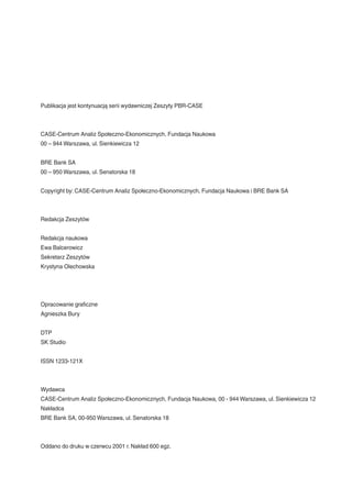 Copyright by: CASE-Centrum Analiz Społeczno-Ekonomicznych, Fundacja Naukowa i BRE Bank SA