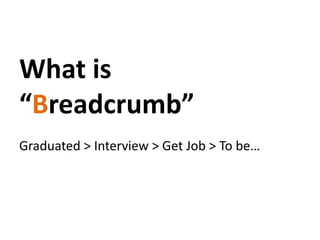 The document appears to be a navigation menu or path showing the steps from graduating university to getting a job at a company. It includes options like interview, get job, sign out, change, and concerns about the next 10 years. The path also includes social media links.