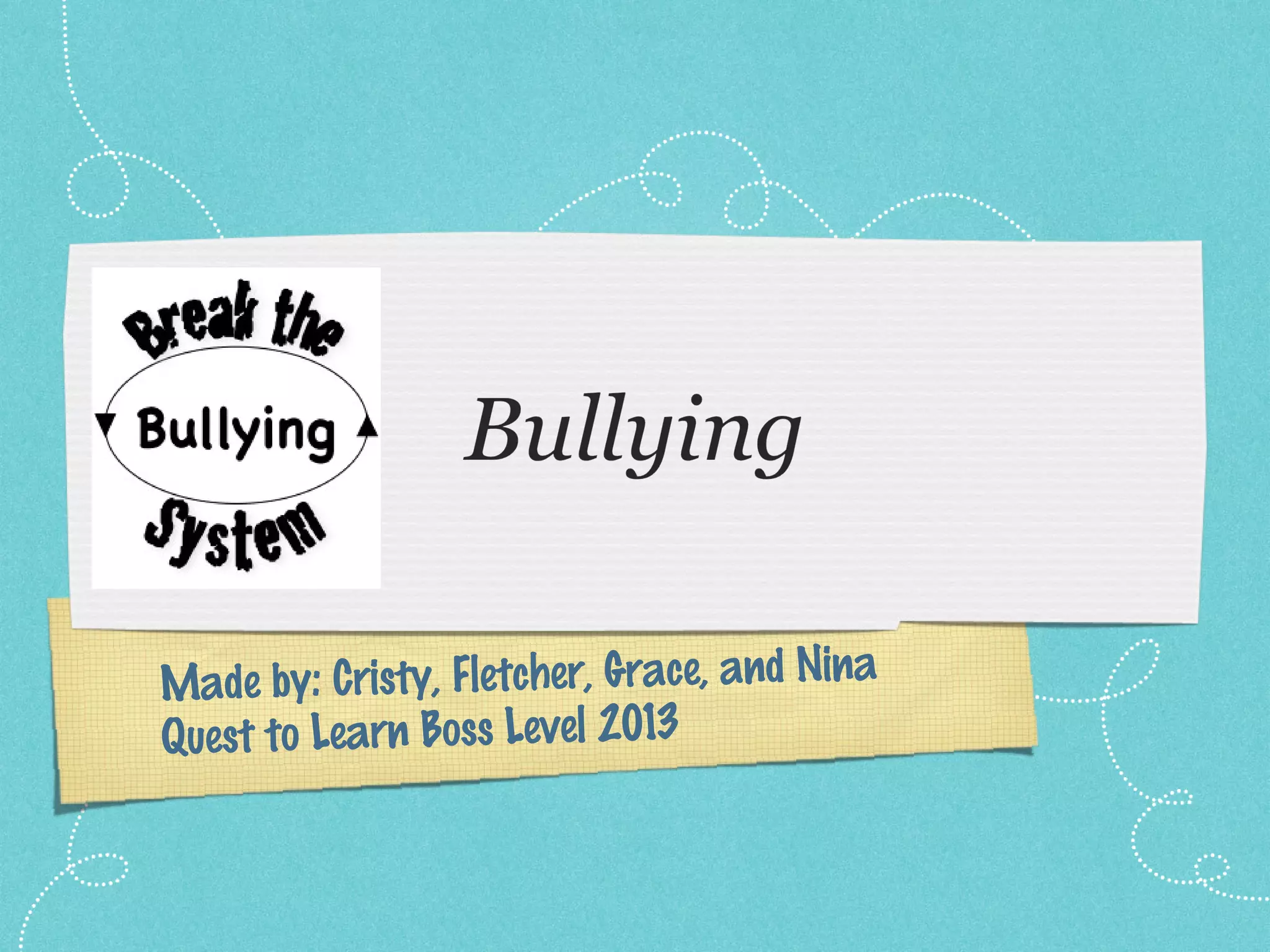 This document discusses bullying, including what it is, what causes it, different types of bullying, how to identify bullies, long term effects of bullying, why bullying is wrong, how to deal with bullies, what empathy is, and ways to apologize. It aims to educate students on these important topics related to bullying prevention and promoting kindness.