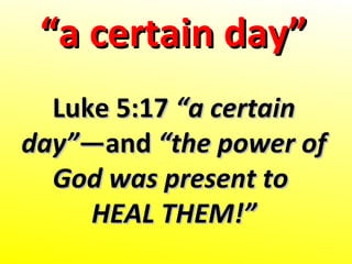 - The overall message is that today is a "certain day" when readers should expect and ask God to demonstrate his power through signs, wonders, healings and salvation, as he has done before for others.