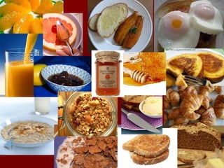 This document provides information on planning healthy breakfasts and packed lunches. It discusses the importance of breakfast for concentration and preventing accidents. Sample breakfast menus include items like grapefruit, porridge, boiled eggs and wholemeal toast. Tips are provided for including fruits, grains and proteins in balanced breakfasts. Guidelines are also given for packing lunches with foods from all food groups that travel well. Suggested lunch items include sandwiches filled with meats, cheeses and vegetables, as well as fruits, yogurts and salads. The document concludes with information on setting up a buffet, including recommendations for foods that can be easily served and eaten while standing.