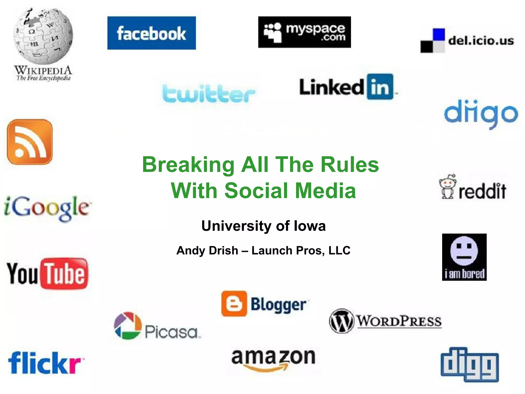 This document discusses breaking traditional career advice and focusing on social media for job searching. It highlights five key areas: making connections through social media, creating a personal brand online, knowing the risks of social media use, getting started with social media for careers, and what social media strategies actually work for finding jobs and opportunities. The document encourages building an online presence and direct connections rather than relying on traditional career tools like newspapers, job boards, resumes and interviews.