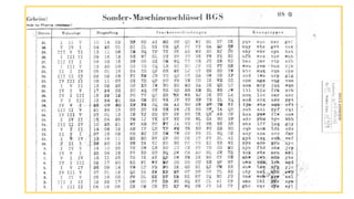 This document discusses how Alan Turing and others broke the German Enigma code during World War 2 using early computers. It summarizes the multi-step process they used: 1) Finding a "crib", or short encrypted text with a likely plaintext meaning, 2) Creating menus to test all possible rotor configurations and plugboard connections for each crib-ciphertext pair, 3) Running the bombe machines in parallel to deduce the Enigma machine settings, and 4) Analyzing the results to find the true encryption settings and decrypt messages. With modern computers and Python, the same process can now be done much faster, in minutes rather than hours or days.