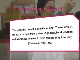 The document discusses the concept of the 'glass ceiling' that hinders women from advancing to top positions in science and academia despite equal enrollment numbers. It highlights various barriers, including societal pressures, lack of mentorship, and discrimination both from men and within female peer groups. The text stresses the importance of networking, support systems, and self-belief for women scientists to overcome these challenges and achieve success in their careers.