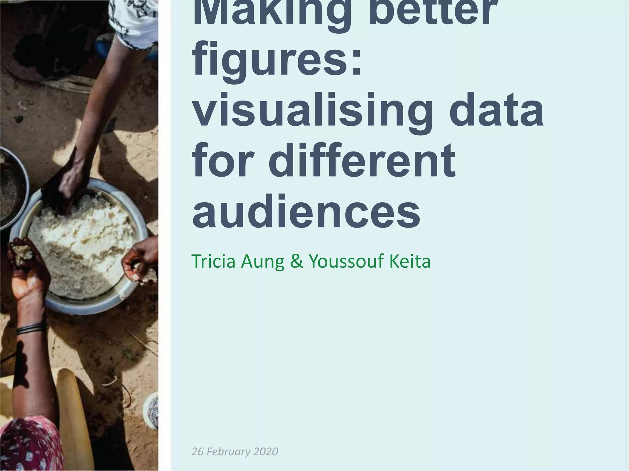 This document provides an overview of best practices for visualizing data for different audiences. It discusses choosing the most appropriate visualization based on the key message, such as comparing numbers, showing how numbers relate to a total, or how numbers change over time. Specific graph types are recommended, such as bar charts for comparisons, pie or stacked bar charts to show parts of a whole, and line graphs to illustrate changes. The document also covers principles like emphasizing important numbers, showing uncertainty, and formatting graphs clearly. Overall, it aims to teach how to effectively communicate data visually for non-technical audiences.