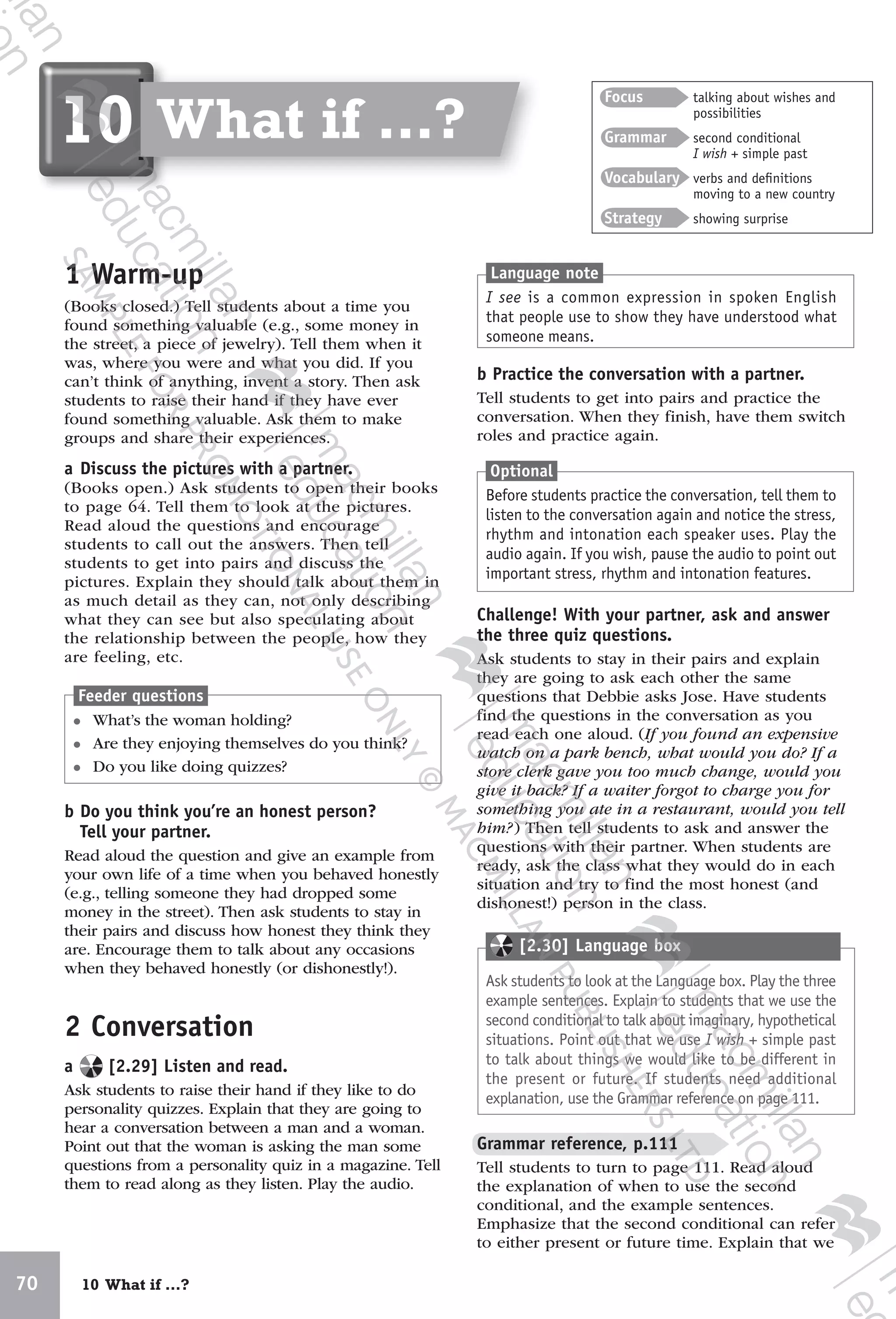2. Explaining grammar points around the second conditional and "I wish" constructions.