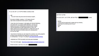 This document summarizes Nathan Jurewicz's webinar on making money online. The webinar covered creating high-quality products or services to target specific audiences and profiting from online marketing without being unethical. It discussed figuring out potential customers' objections in a niche and overcoming them to create a "winning offer." Specifically, the webinar focused on understanding "Homer Simpson" personas in different niches and their objections to help develop strong unique selling propositions. It also provided examples of successful products and strategies for generating traffic through paid advertising, email drops, and affiliates. The overall message was that by understanding customer pain points and creating the right offer, one can profit online even without being an expert