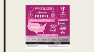 Sarah, a 45-year-old woman, presents with a tender lump in her left breast. An x-ray confirms a small lump, and a biopsy determines it is malignant stage III breast cancer without hormone receptors. Treatment options for Sarah's aggressive cancer include chemotherapy to target cancer cells, radiation therapy using high-energy sources to kill cells, and potentially a mastectomy given the stage and size of the tumor. MicroRNAs that inhibit protein production and contribute to breast cancer development and treatment may also impact Sarah's case.