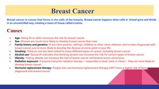 This document describes a machine learning project to classify breast cancer tumors as either benign or malignant. The project uses a dataset containing attributes of breast cancer cases to build classification models using logistic regression, decision trees, k-nearest neighbors, and naive bayes. The k-nearest neighbors model achieved the highest accuracy of 95% and recall of 97%, making it the best performing model for this classification task.