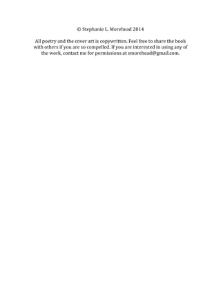 This document is a collection of poems written by Stephanie L. Morehead. The poems explore themes of motherhood, love, nature, and family. They describe watching a son experience the world for the first time, cherishing moments holding a baby, and the deep bonds formed within a family. The collection conveys the profound emotions of parenting and being in a committed relationship through imagery of nature, light, and growth.