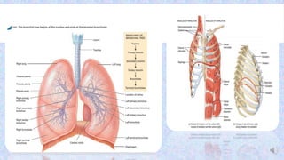 Breathing exercises, also called ventilatory training, are fundamental interventions for patients with pulmonary diseases. They can improve ventilation, increase cough effectiveness, prevent postoperative complications, and more. There are various types of breathing exercises, including diaphragmatic breathing, pursed lip breathing, and segmental breathing. Diaphragmatic breathing focuses on belly breathing to improve strength. Pursed lip breathing prolongs exhalation to slow breathing rate. Segmental breathing targets specific areas of the lungs that need more ventilation. Proper technique and positioning are important to teach patients how to correctly perform different breathing exercises.