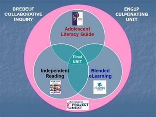 The document outlines a collaborative inquiry by Brebeuf College School aimed at enhancing student engagement, voice, and literacy proficiency through daily independent reading using practical strategies and digital tools. It includes a survey assessing students' reading habits, preferences, and the perceived impact of independent reading on their learning experience. Key themes emphasize the importance of student choice in reading and connecting classroom learning to real-world experiences.