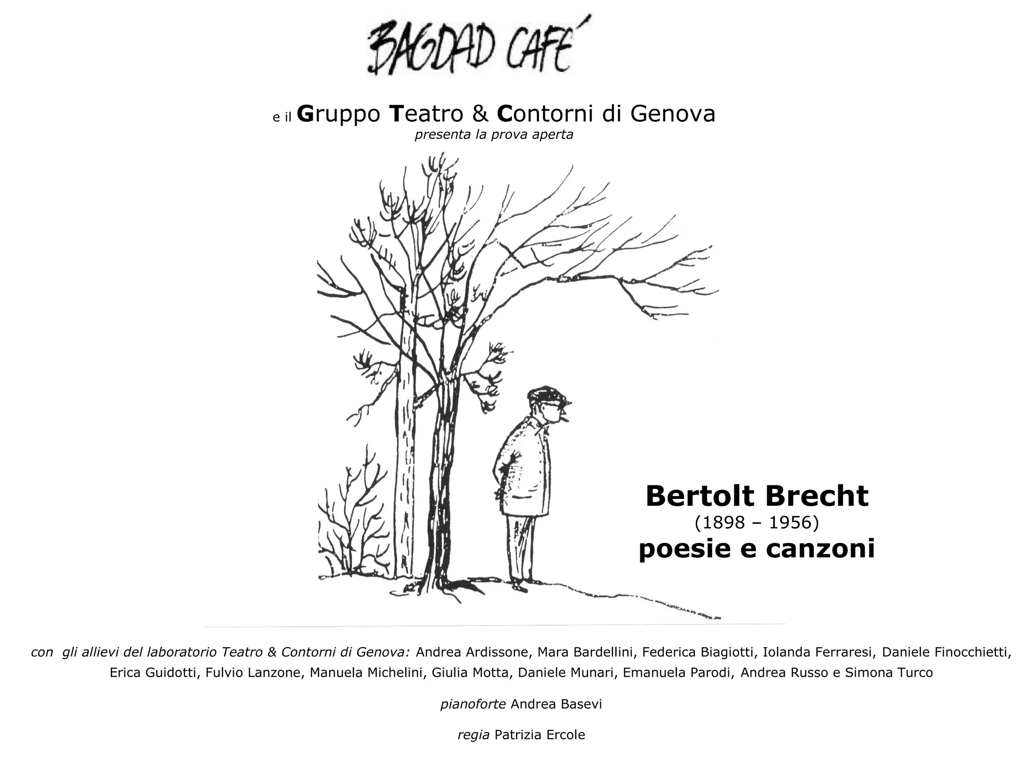 Il gruppo teatro & contorni di Genova presenta una prova aperta dedicata a Bertolt Brecht, con poesie e canzoni interpretate dagli allievi del laboratorio. La regia è affidata a Patrizia Ercole e il pianoforte è suonato da Andrea Basevi. Il progetto coinvolge diversi giovani talenti che esplorano i temi brechtiani.