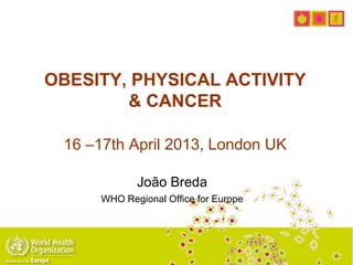 This document discusses obesity, physical activity, and cancer. It provides the following key points: