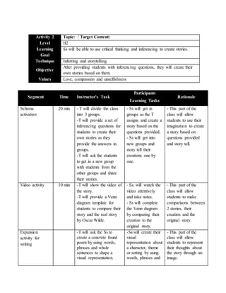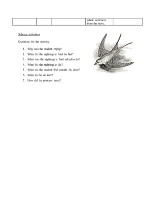 Ss will develop critical thinking and storytelling skills. They will work in groups to create stories based on inferencing questions provided by the teacher. Groups will then share their stories. Students will then watch a video of the original story and complete a Venn diagram comparing their story to the original. Finally, students will create a found poem representing characters, themes or settings from the story using words and phrases.