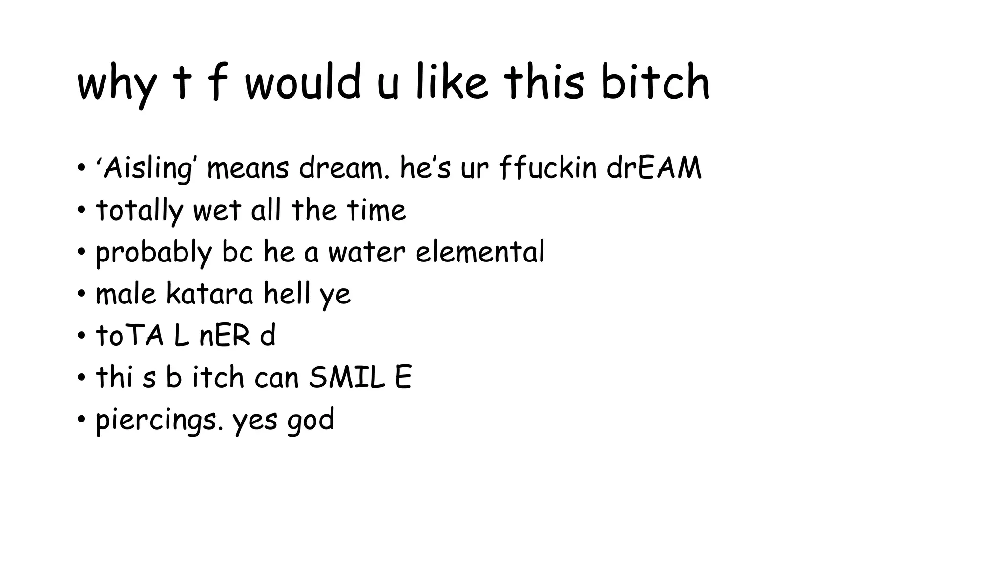 This document provides a summary of an original character named Brett Aisling. It describes him as a water elemental who is always wet and has piercings. His parents died at sea when he was 16, interrupting his surfing career. He has relationships with characters named Hayden Guerritore and Noel Flucht. Fun facts mentioned are that he is 5'9", likes Italian sausages but not sushi, has a large fish tank, and a dog named Ailene.