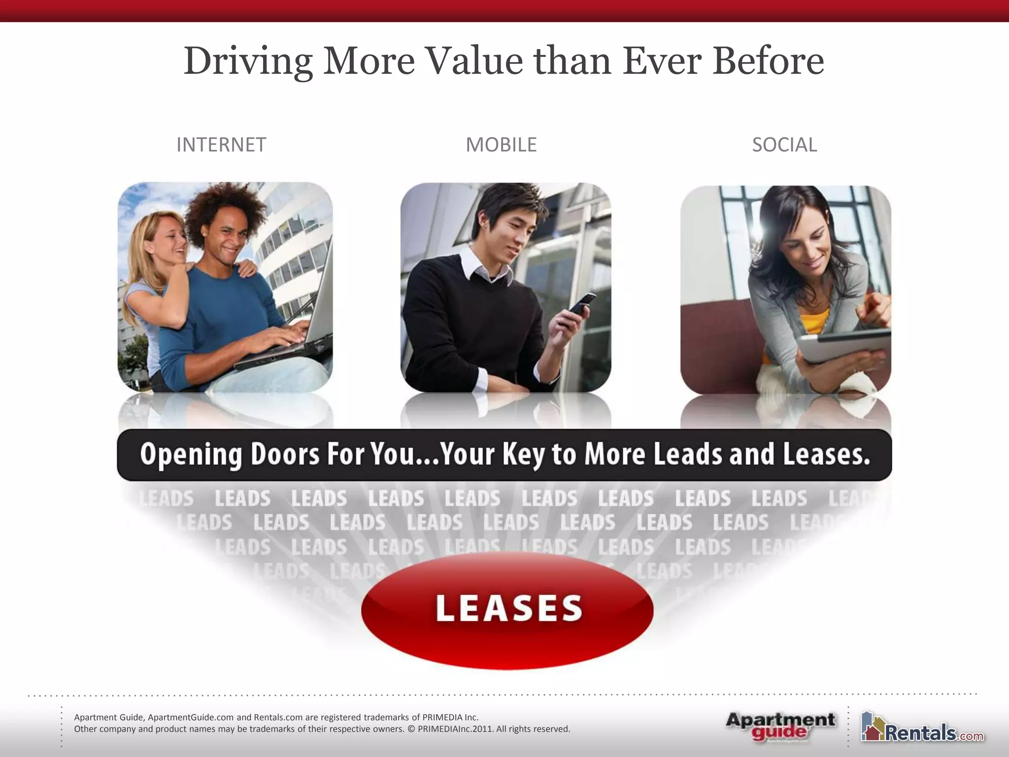 This sales presentation from Apartment Guide highlights how the company has adapted its business to changing media consumption habits. It notes that digital media usage, especially on mobile devices, has significantly increased in recent years. The document also shows that Apartment Guide has experienced large growth in online traffic, mobile users, social media followers, and leads generated for property listings. It promotes Apartment Guide's digital products and services as ways for properties to capitalize on these trends and drive more rental leads.