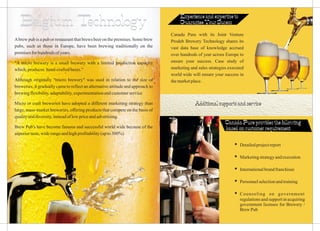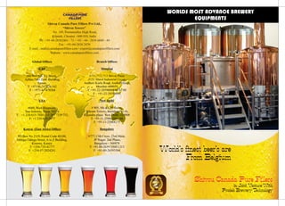 Canada Pure offers comprehensive solutions for establishing microbreweries, including equipment, process technology, recipes, marketing support, and staff training. With over four decades of experience and in partnership with Prodeb Brewery Technology of Belgium, Canada Pure provides turnkey projects from concept to completion. A range of equipment options are available to suit different production needs.