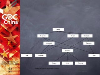 The document discusses the advantages and disadvantages of using both cheap commercial engines and open source engines for developing cross-platform indie games. It emphasizes the importance of composition over inheritance in game object systems, the necessity of integrating scripting with native code, and the challenges related to debugging, memory limitations, and performance optimization in game development. The talk also highlights tools and techniques for effective content pipeline management and performance troubleshooting.