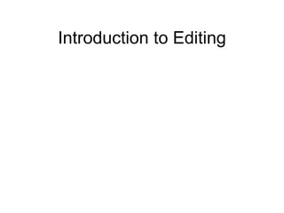 1. The document discusses different types of shots that editors consider when editing films, including simple shots with no camera movement, complex shots with lens or camera movement but no mounting movement, and developing shots with all three types of movement.