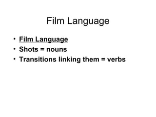 3. Camera movements like pans, tracks, zooms are discussed and how they can add impact by revealing new information or tracking with and around subjects.