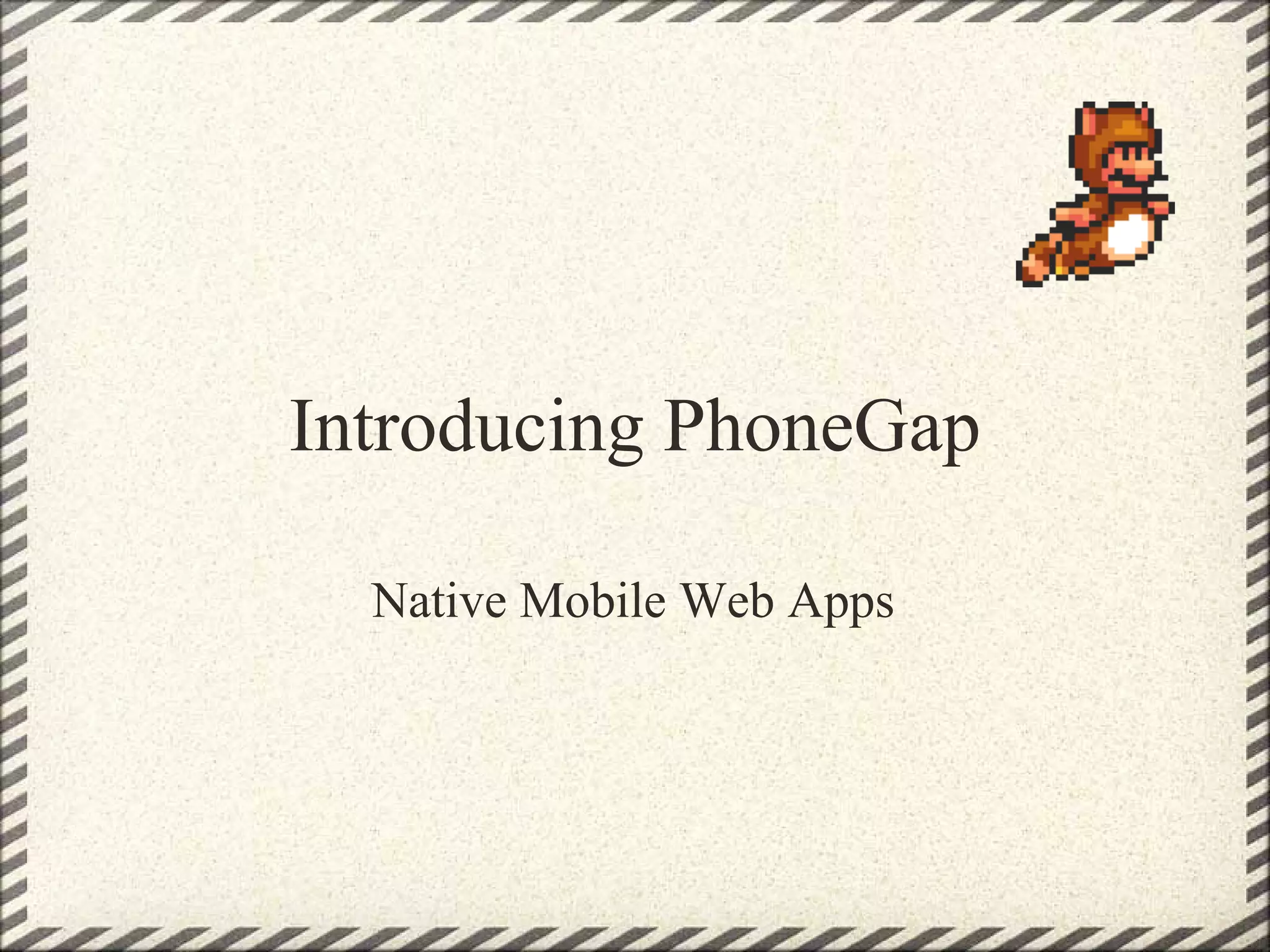 PhoneGap is a framework that allows developers to build native mobile apps using web technologies like HTML, CSS, and JavaScript. It addresses the problems of platform fragmentation and the difficulty of native mobile development. PhoneGap uses a plugin architecture to expose device capabilities like geolocation, camera, contacts, etc. through a consistent JavaScript API, allowing apps to work across platforms like iOS, Android, Blackberry and more. The goal of PhoneGap is to make the web a first-class development platform and standardize cross-platform mobile app development.