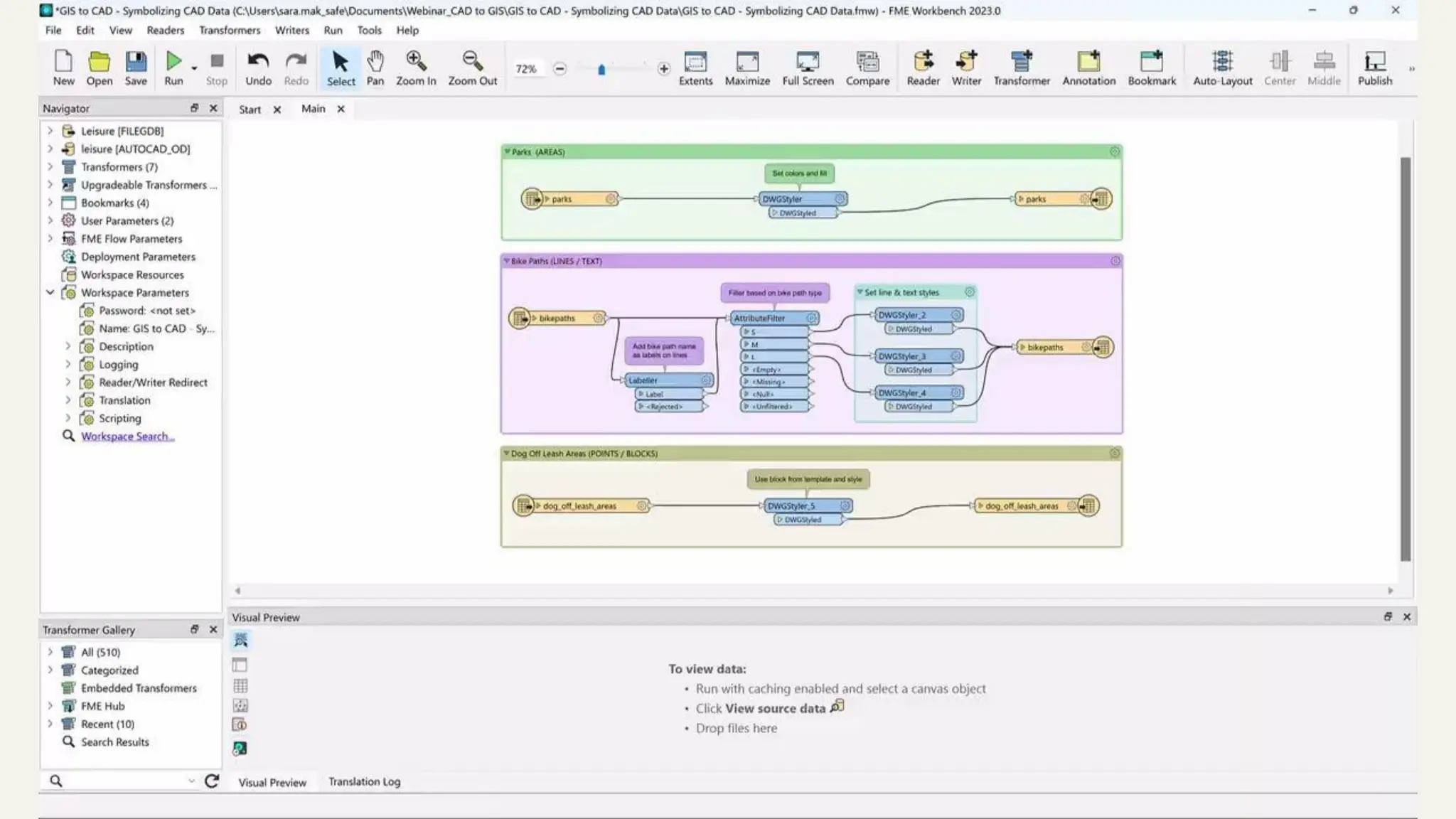 The document discusses strategies for automating data integration between CAD and GIS, highlighting common challenges and real-world applications. It covers various scenarios for migrating CAD data to GIS, including assigning coordinate systems and converting label information into attributes, as well as features for sharing GIS data with CAD users. The conclusion emphasizes the importance of automation for achieving seamless integration of CAD and GIS workflows.