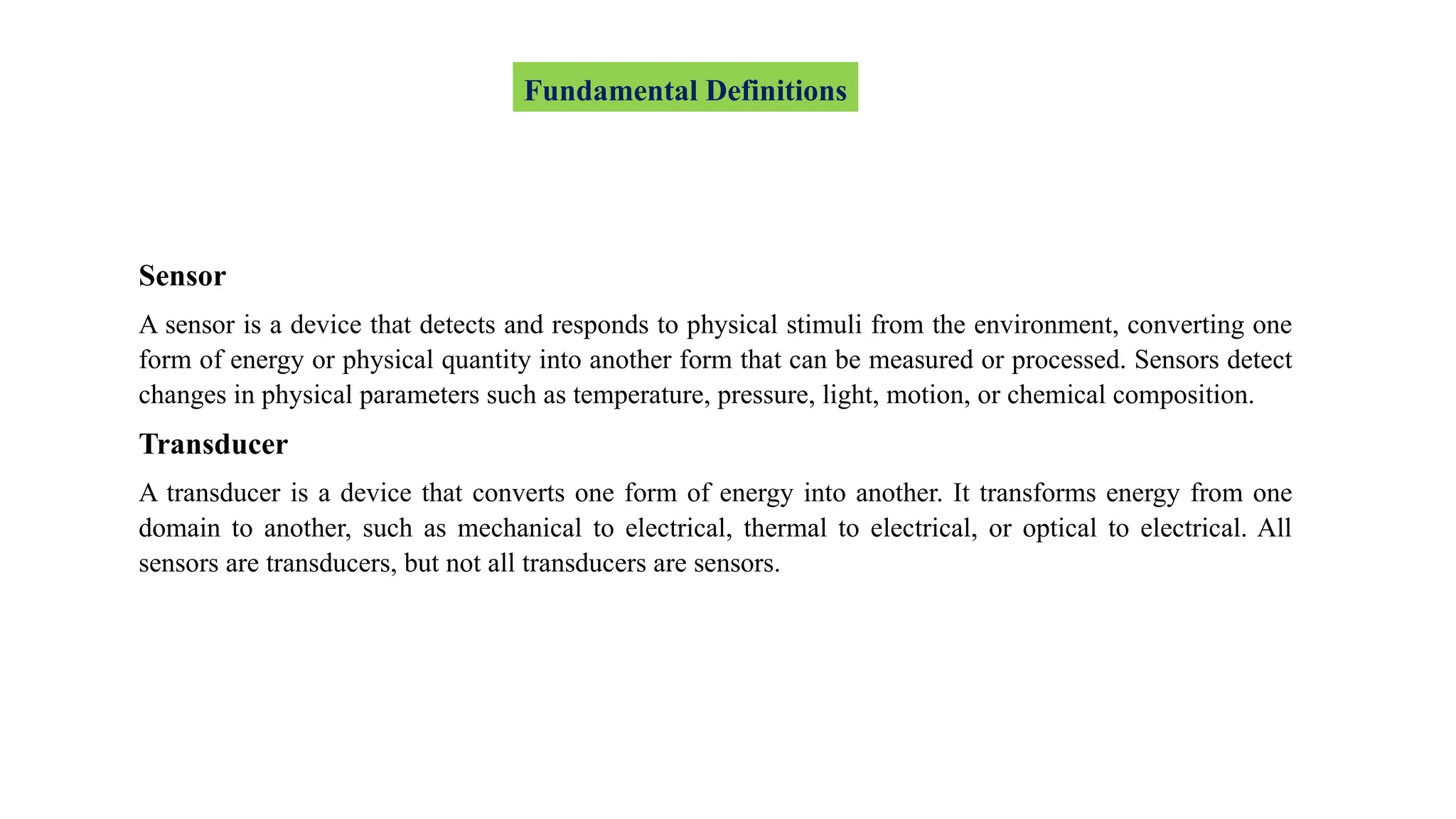 sensors are transducers, but not all transducers are sensors.