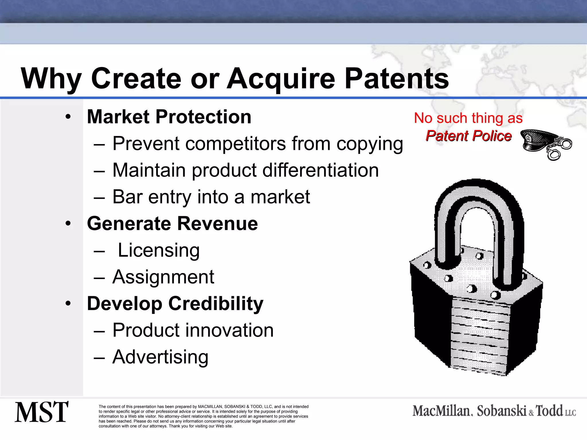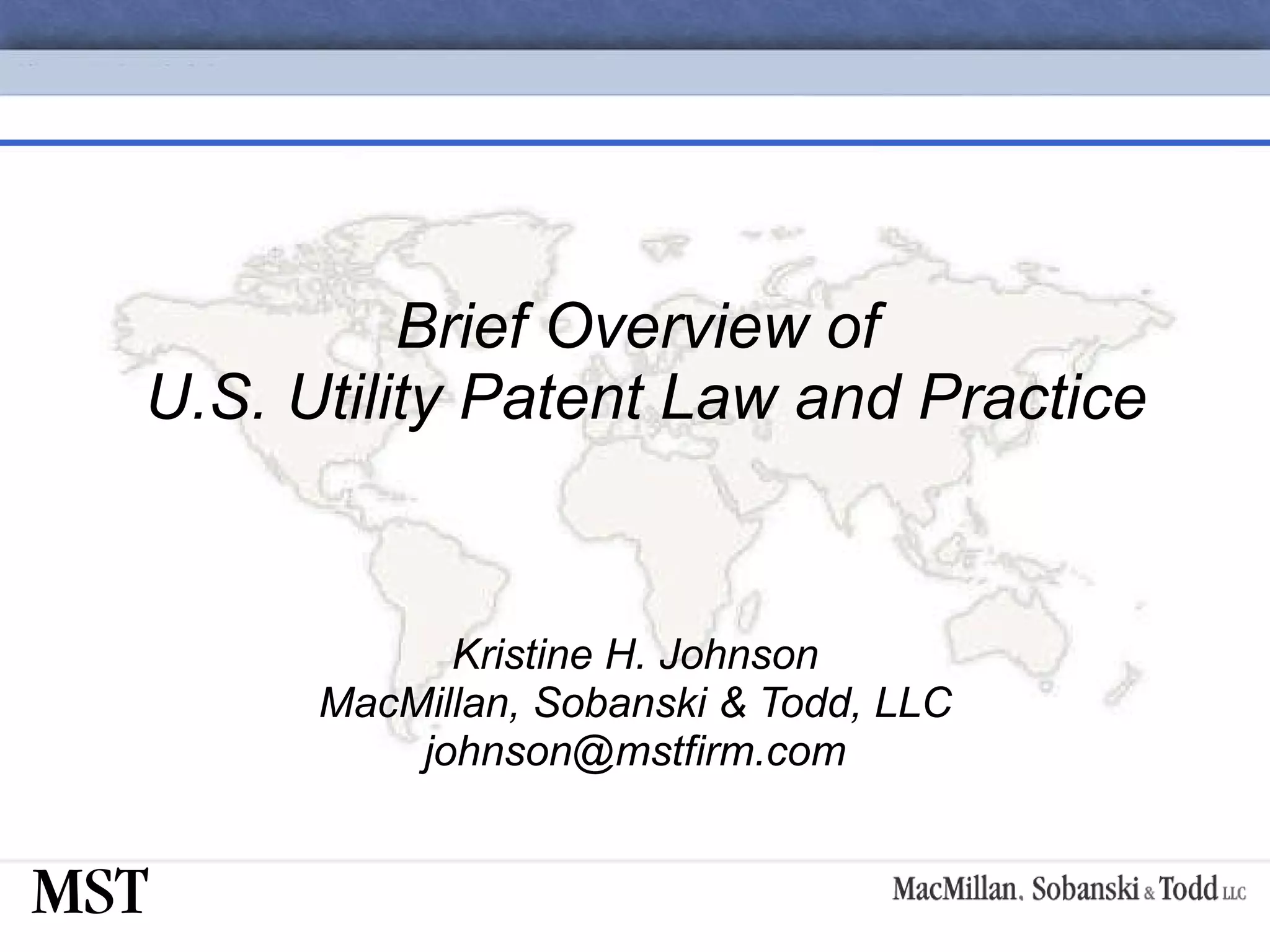 This document provides a brief overview of US utility patent law and the patenting process. It discusses the different types of patents including design, plant, and utility patents. It describes the basic patenting timeline including filing a provisional or non-provisional patent application and undergoing examination. Key concepts like patentability requirements of utility, novelty, and non-obviousness are introduced. Cost estimates and strategies for obtaining and enforcing a patent are also summarized.
