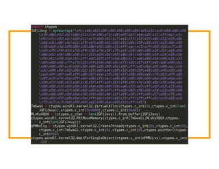 The document discusses the development of the Veil framework by penetration testers to automate the bypassing of antivirus protections for testing security systems. It highlights the importance of using non-standard programming languages like Python to evade detection and outlines the framework's methods, including shellcode injection techniques. The presentation emphasizes the need for organizations to test their security solutions effectively and adapt as antivirus detection evolves.