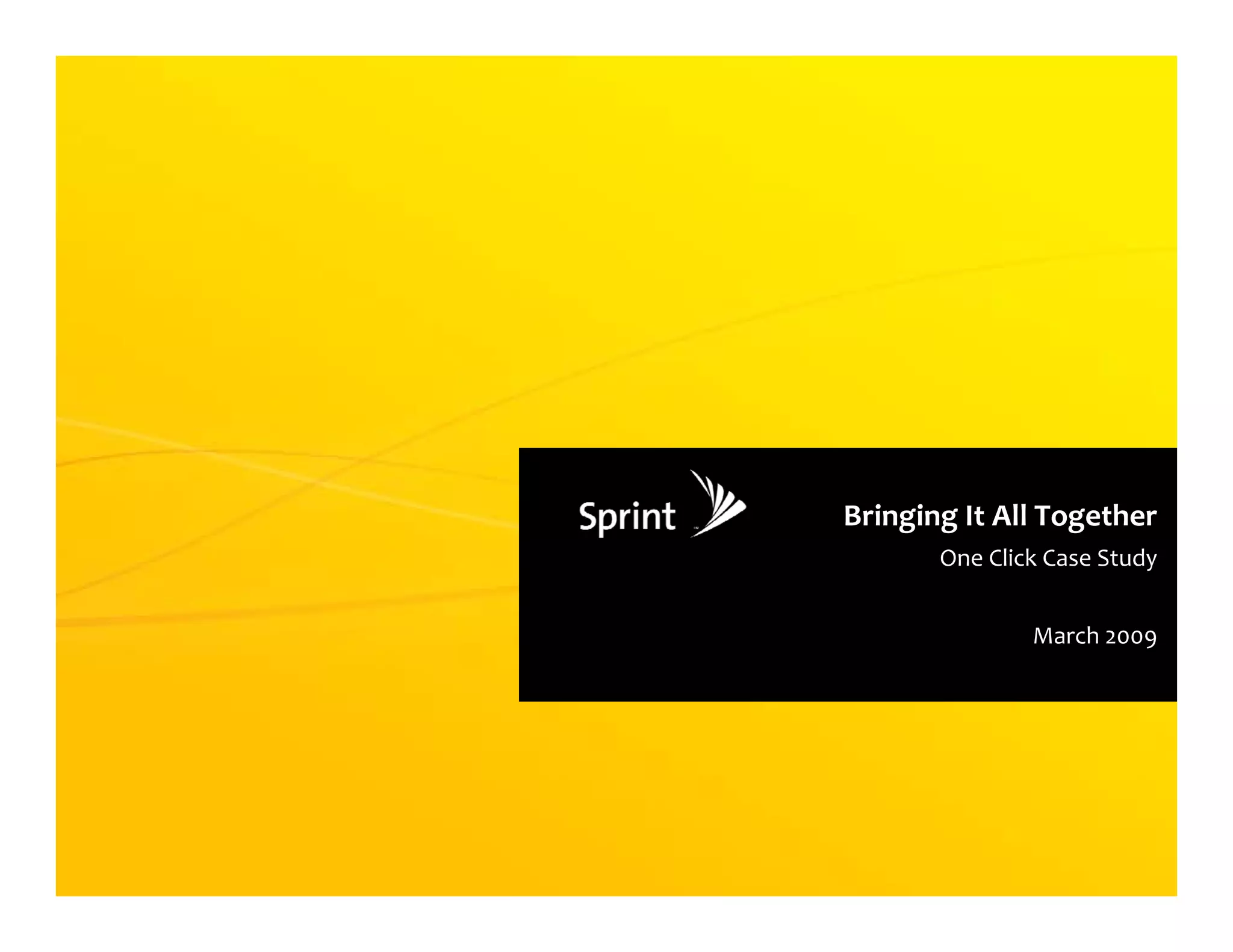 The document is a case study on the development and evolution of Sprint's 'One Click' interface from 2002 to 2009, detailing its historical context, design challenges, and user engagement goals. It outlines key milestones including the launch of 3G services, the merger with Nextel, and the emphasis on creating a personalized user experience to increase data adoption and engagement. The case study concludes with observations and recommendations for future design directions.