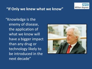This document summarizes a presentation on knowledge management and its application to healthcare commissioning.