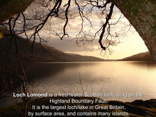 - Loch Lomond, the largest lake in Great Britain, located in Scotland and containing many islands.